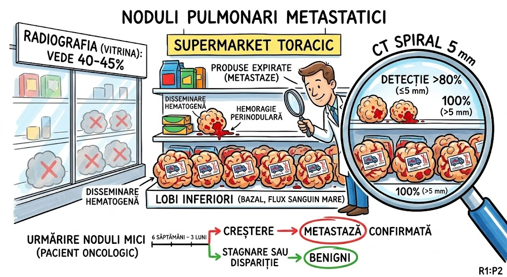 🥊 Ringul Comparatiilor: Tumorile primare cardiace sunt ca un magazin artizanal cu program redus — rare, atipice, greu de gasit. Tumorile secundare (metastazele) sunt ca un supermarket non-stop, deschis 24/7 — sosesc de peste tot, se instaleaza oriunde, si sunt de 40 de ori mai numeroase. Cand gasesti o "masa" intracardiaca, primele intrebari nu sunt despre tumori primare exotice, ci despre cheaguri si metastaze.
