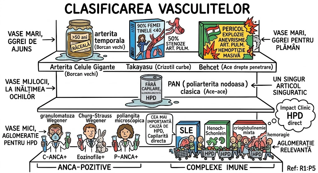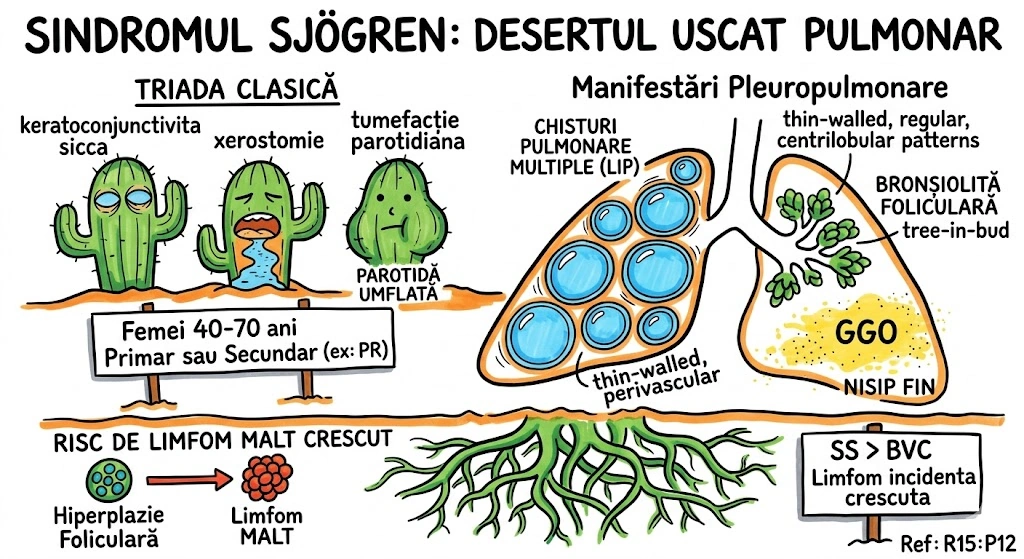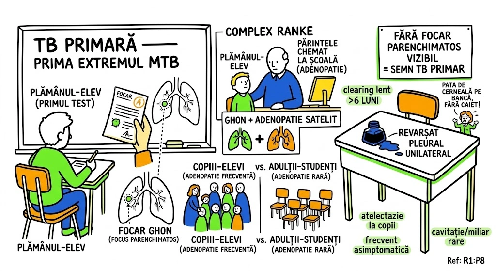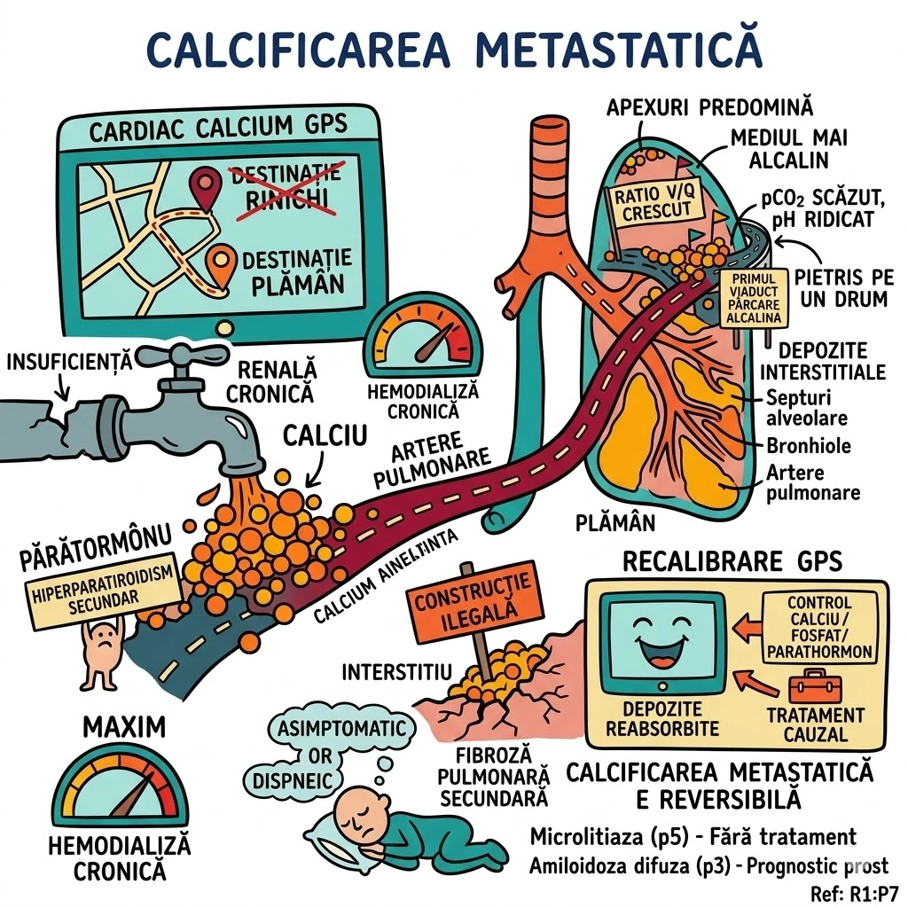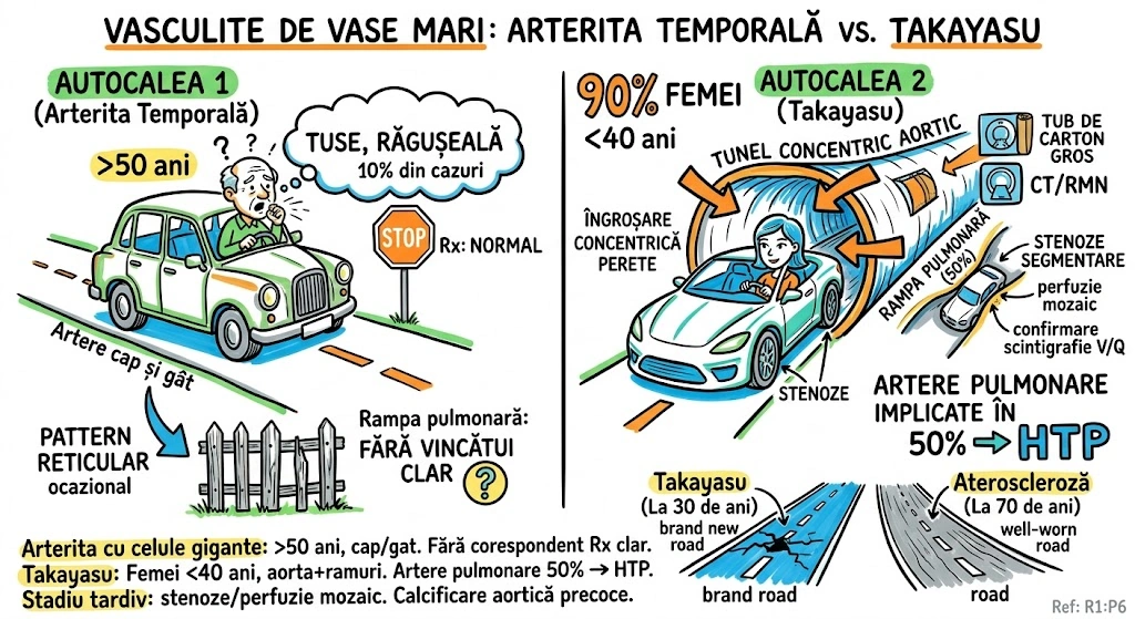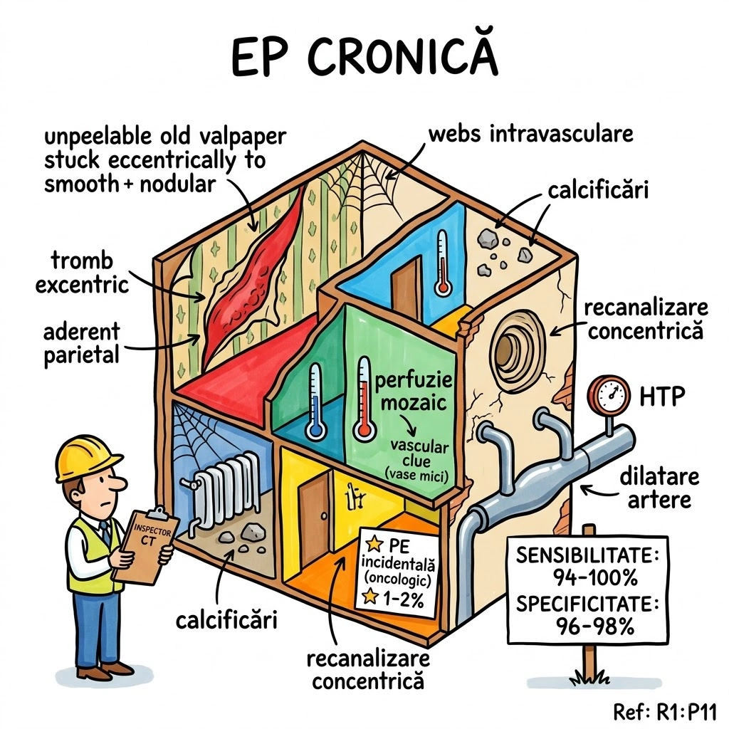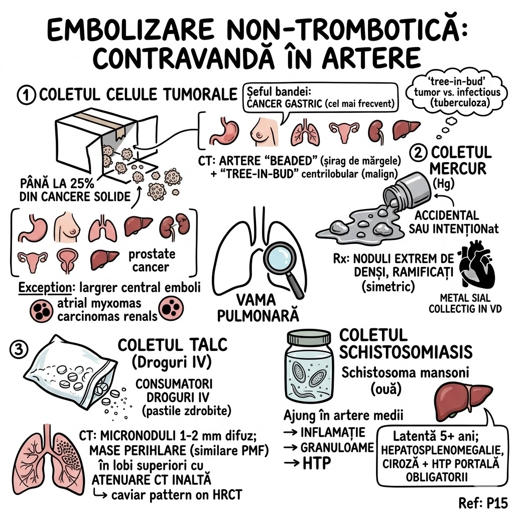 🥊 Ringul Comparatiilor: MAV pulmonara e ca o scurtatura de instalatie facuta in graba — apa ocoleste caloriverele si ajunge direct la canalizare. Diferenta fata de sechestrul bronhopulmonar (p12): sechestrul primeste apa de la alta sursa (artera sistemica din aorta), MAV primeste apa din conducta corecta (artera pulmonara) dar o trimite direct la iesire fara sa treaca prin calorifer (capilare). Ambele sunt defecte vasculare, dar cu circuite complet diferite.