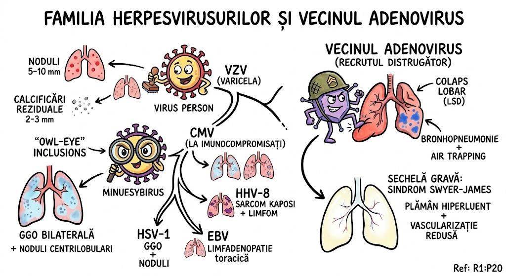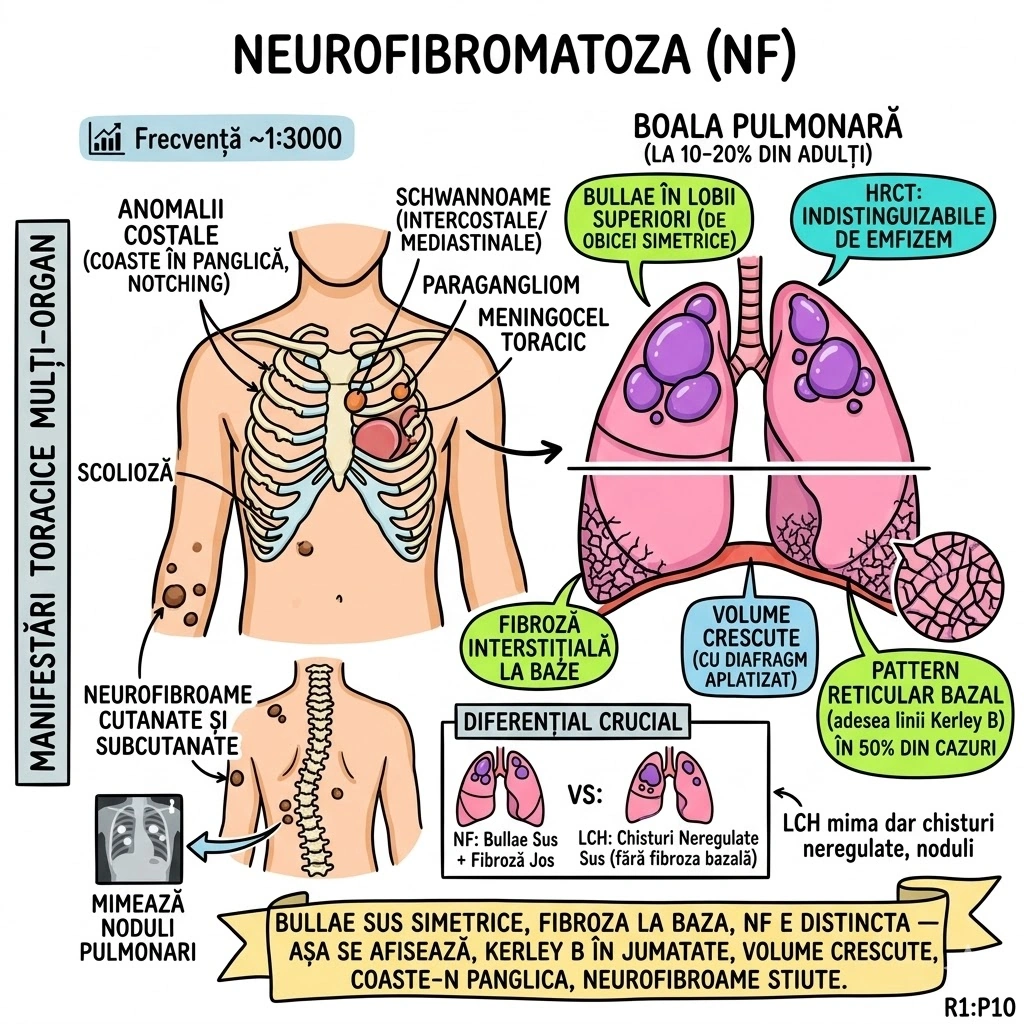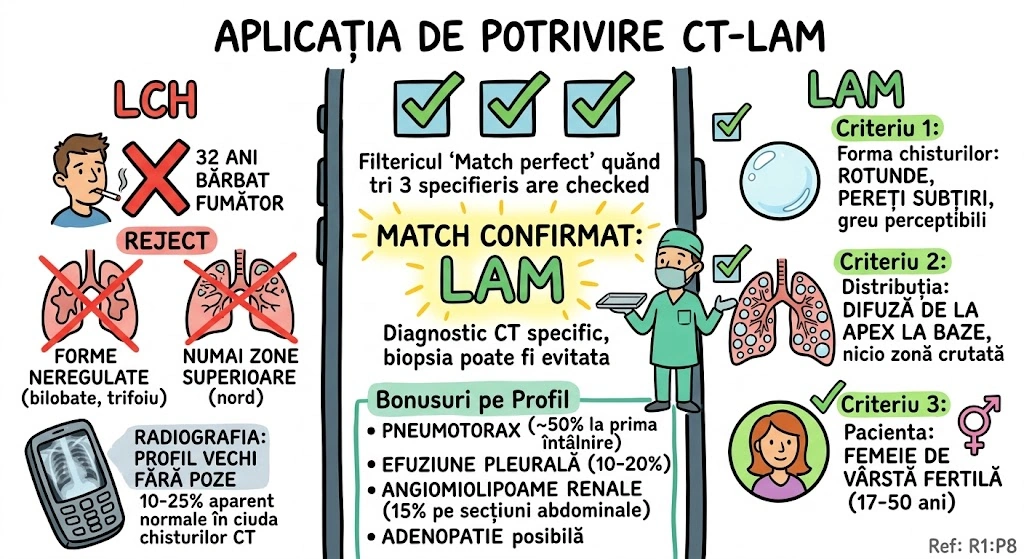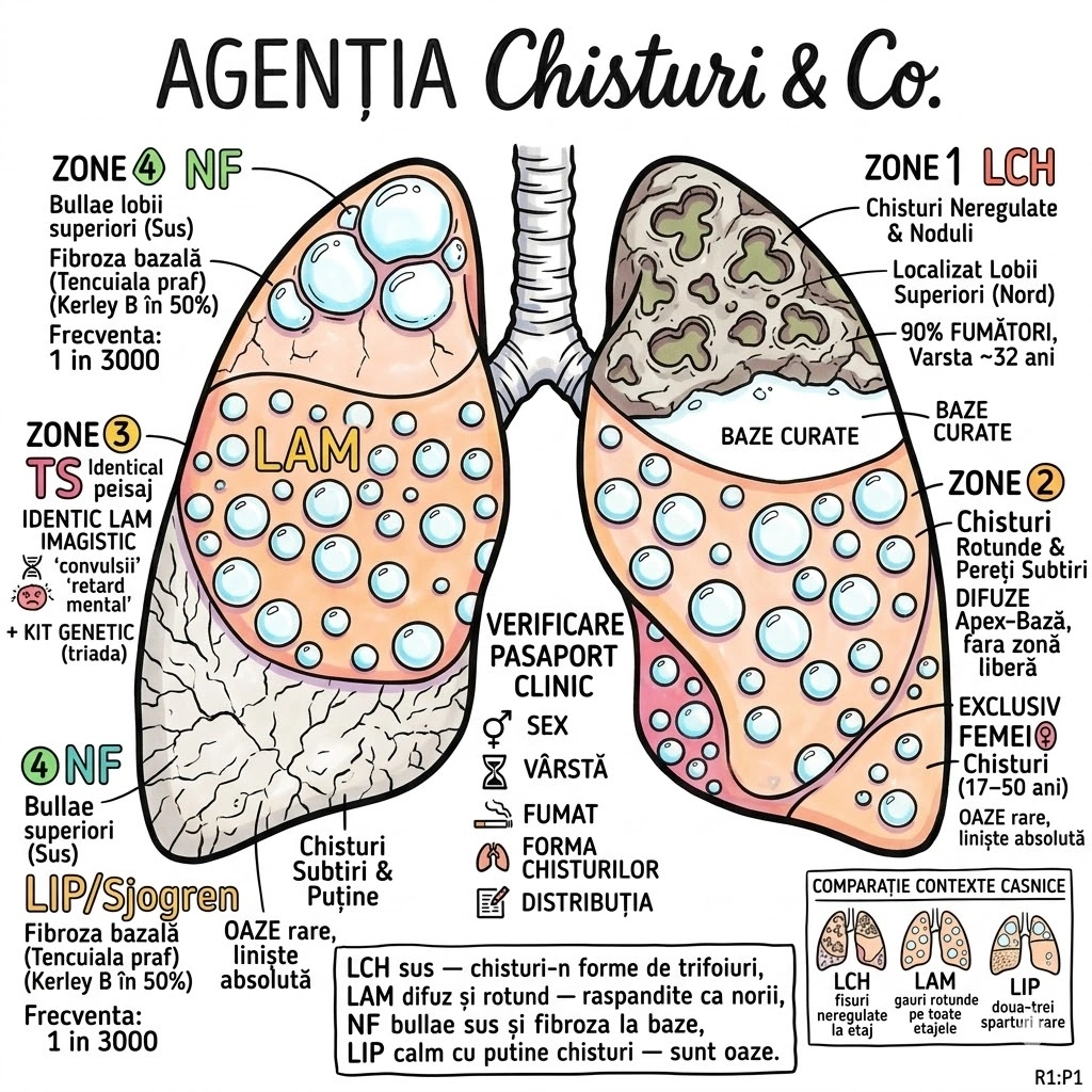 🥊 Ringul Comparatiilor: Leziunile congenitale pulmonare seamana cu un joc de carti in care fiecare carte are un defect unic — dar unele carti se amesteca: sechestrul poate coexista cu CCAM (leziune hibrida), scimitarul include drenaj venos anomal, iar ELC nerecunoscut devine atrezie bronsica la adult. Diferenta fata de un joc de carti normal: aici, cartile nu se amesteca aleatoriu — se grupeaza in familii anatomice (bronsice, parenchimatoase, vasculare).