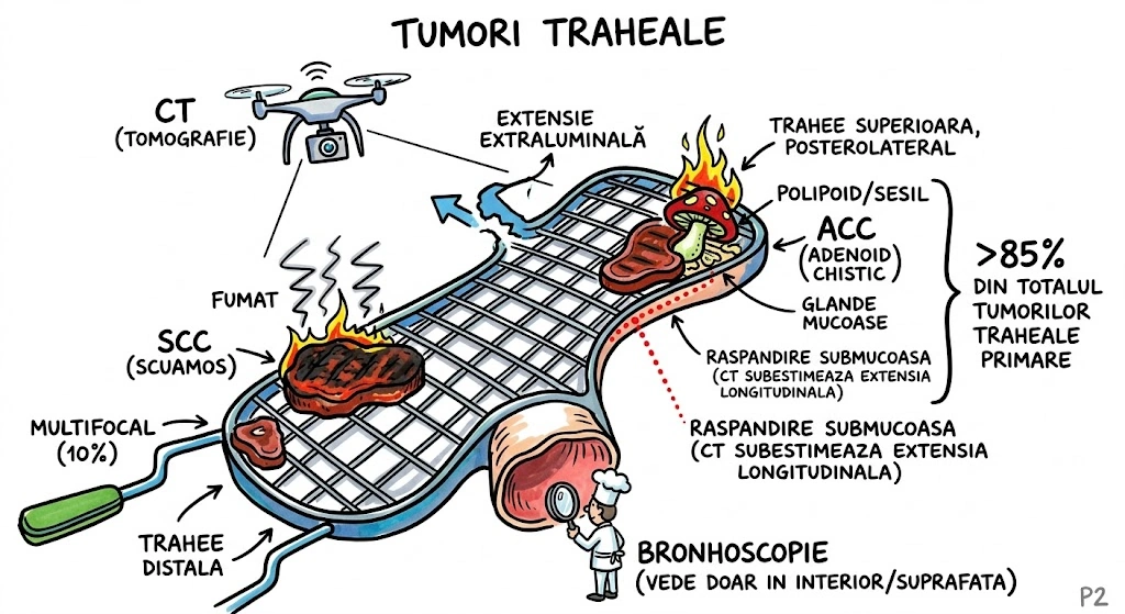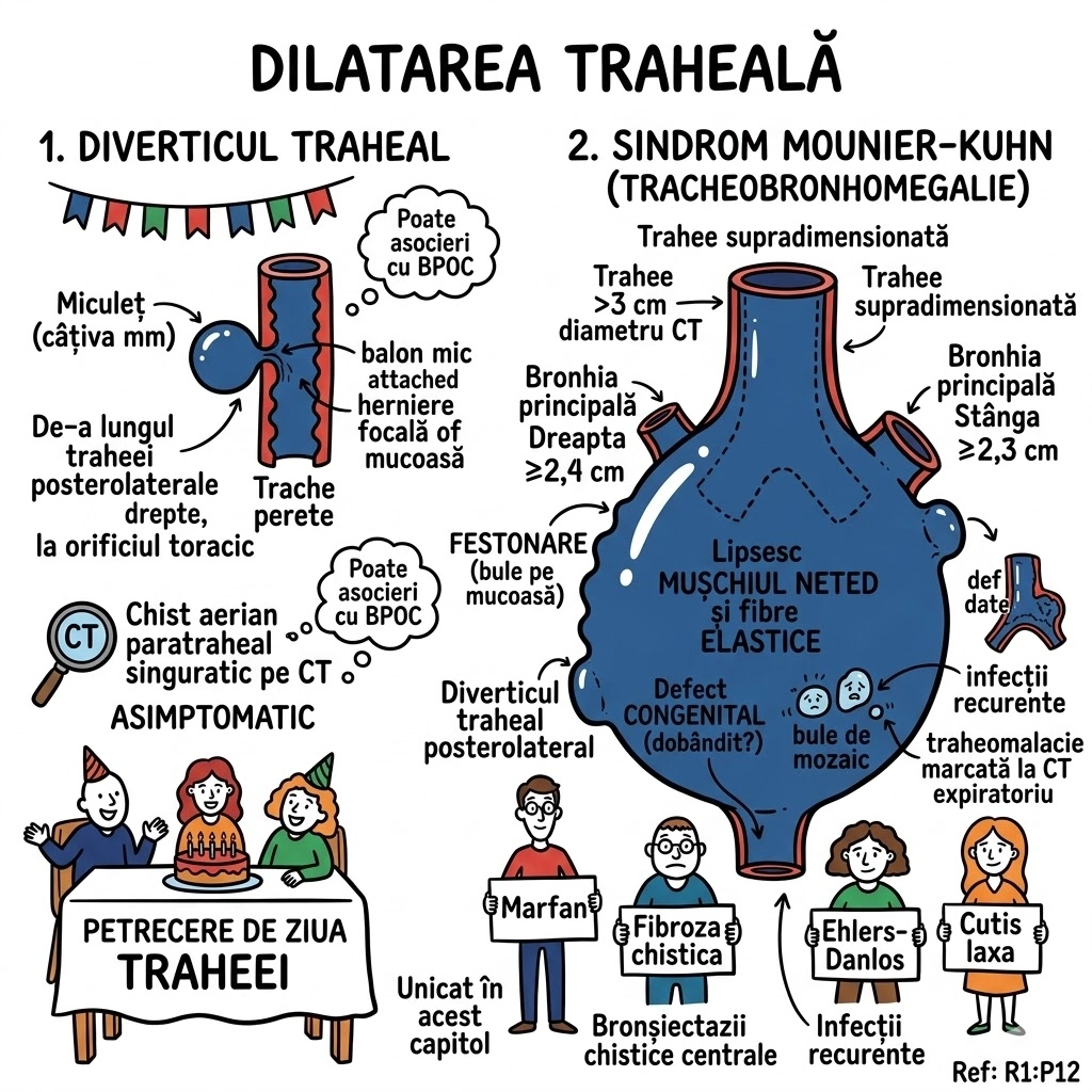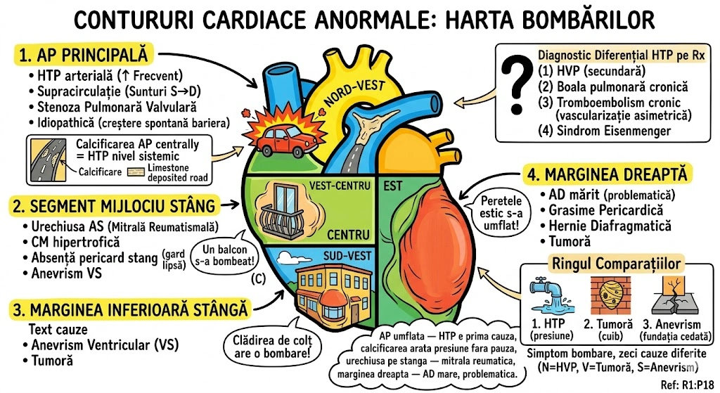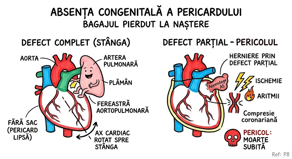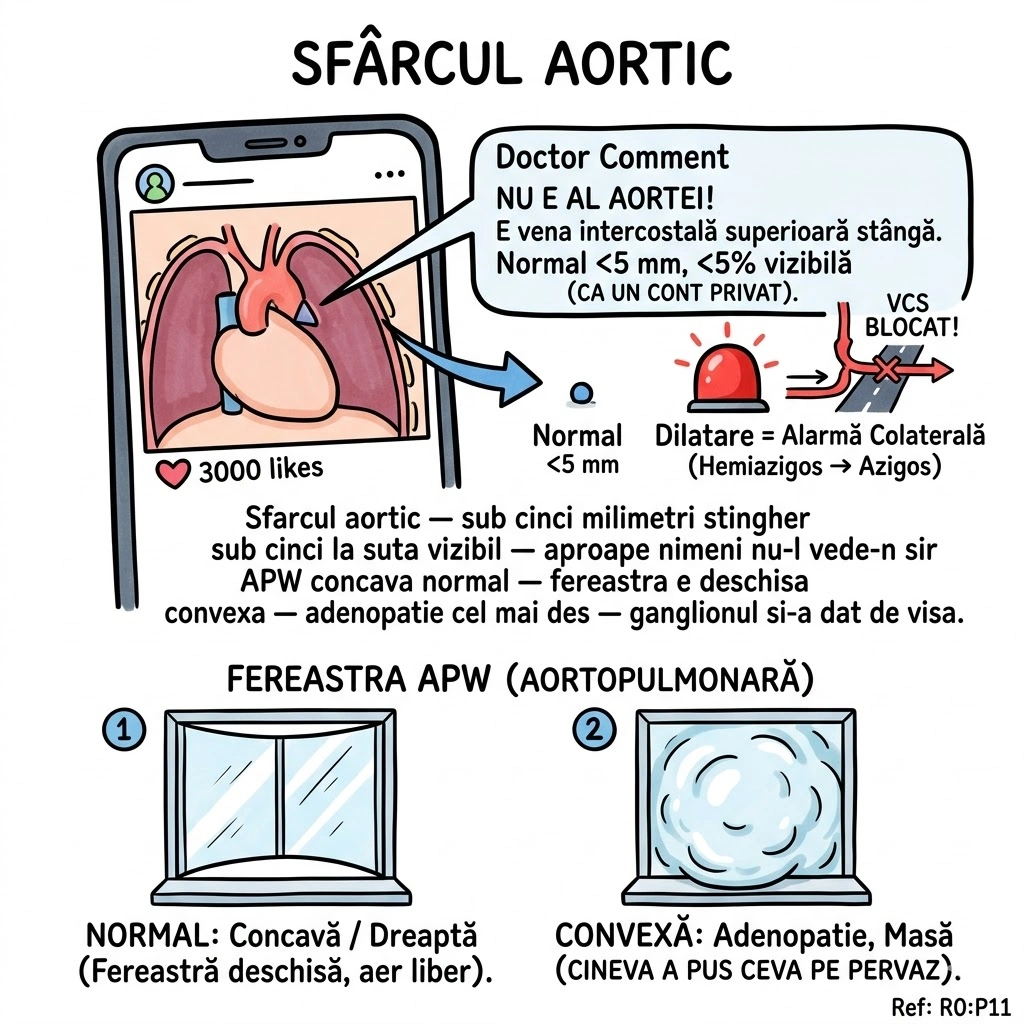 🥊 Ringul Comparatiilor: Bronsul traheal e ca un gard viu plantat in locul gresit la marginea curtii — nu deranjeaza pe nimeni pana creste prea mult si se infecteaza, moment in care trebuie tuns sau extirpat. Bronsul cardiac e ca o extensie de casa facuta fara autorizatie. Izomerismul e ca doua camere de hotel identice in loc de oglindite — functioneaza aparent, dar toata instalatia sanitara (cardiaca) este aranjata gresit.