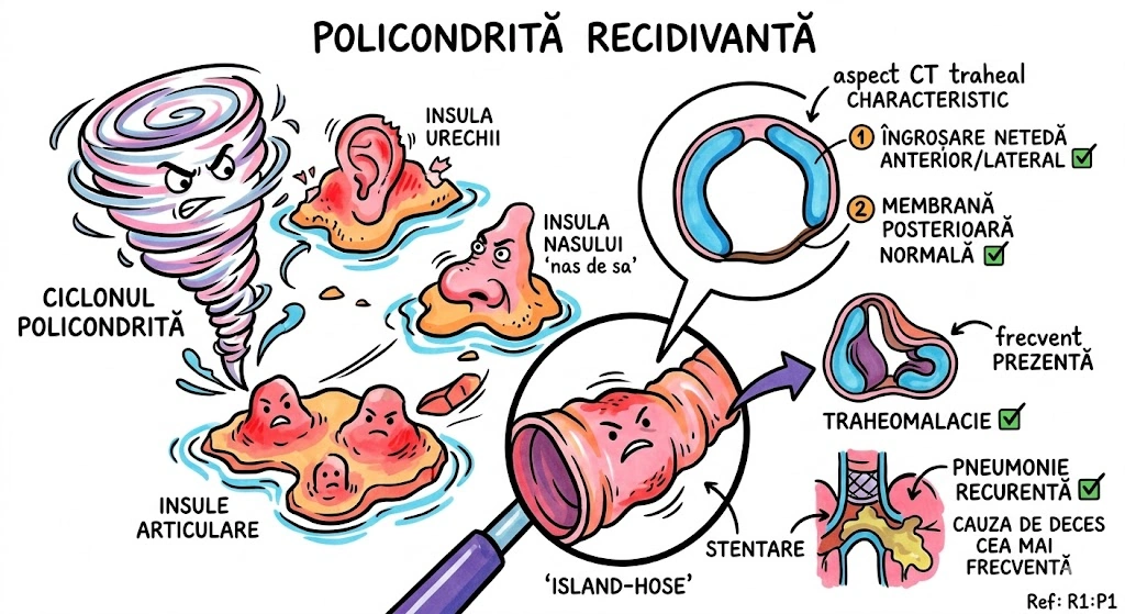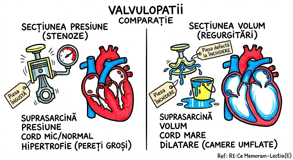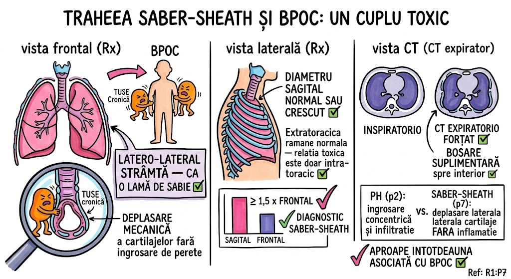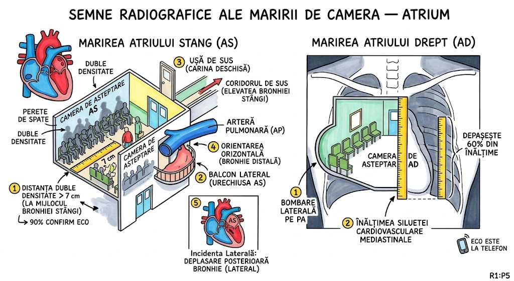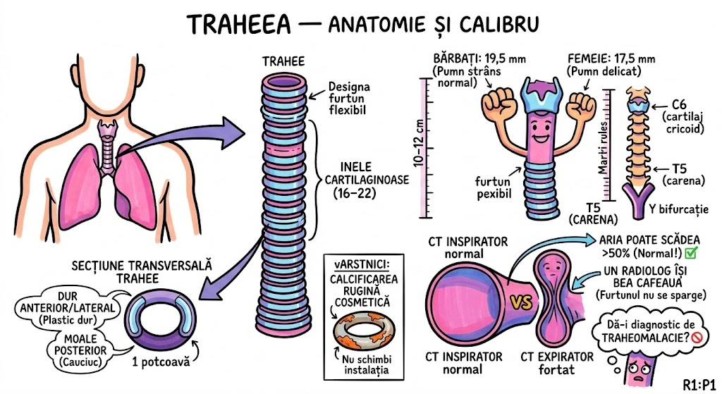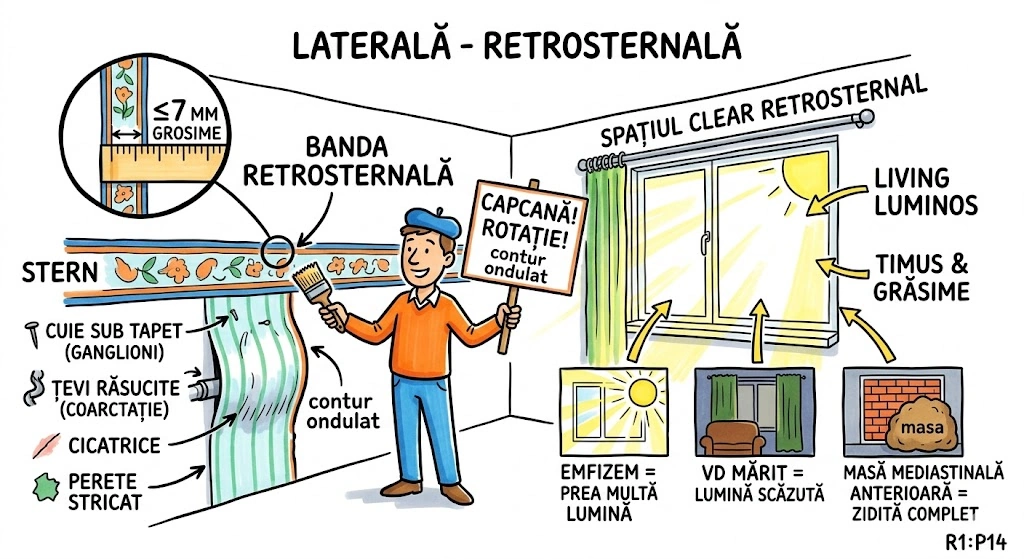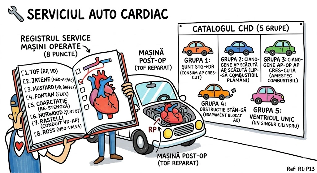🥊 Ringul Comparatiilor: Bronsul traheal e ca un gard viu plantat in locul gresit la marginea curtii — nu deranjeaza pe nimeni pana creste prea mult si se infecteaza, moment in care trebuie tuns sau extirpat. Bronsul cardiac e ca o extensie de casa facuta fara autorizatie. Izomerismul e ca doua camere de hotel identice in loc de oglindite — functioneaza aparent, dar toata instalatia sanitara (cardiaca) este aranjata gresit.