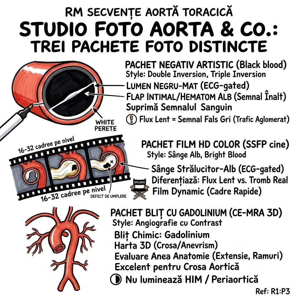 Bucataria RMN are 7 ustensile aranjate pe blat. Bucatarul-rezident le priveste, confuz: "De ce nu pot folosi unul singur?" Seful de bucatarie ii raspunde sec: "Pentru ca un cutit nu face acelasi lucru cu un termometru." T1 SE = cutitul. T2 SE = termometrul. T1+Gd = lampa UV. Fat-sat = situla de grasime. Cine = camera video. DE-MRI = fotograful care vine tarziu. Sagitale/coronale = oglinda retrovizoare. Fiecare are un singur job. Niciunul nu il inlocuieste pe altul. Si deasupra blatului, un post-it: "Pe SE sangele curge NEGRU. Pe Cine sangele e ALB. Inverseaza asta si interpretezi tot invers." Asta e genul de informatie care pare banala pana cand confunzi un tromb cu un pool sangvin.