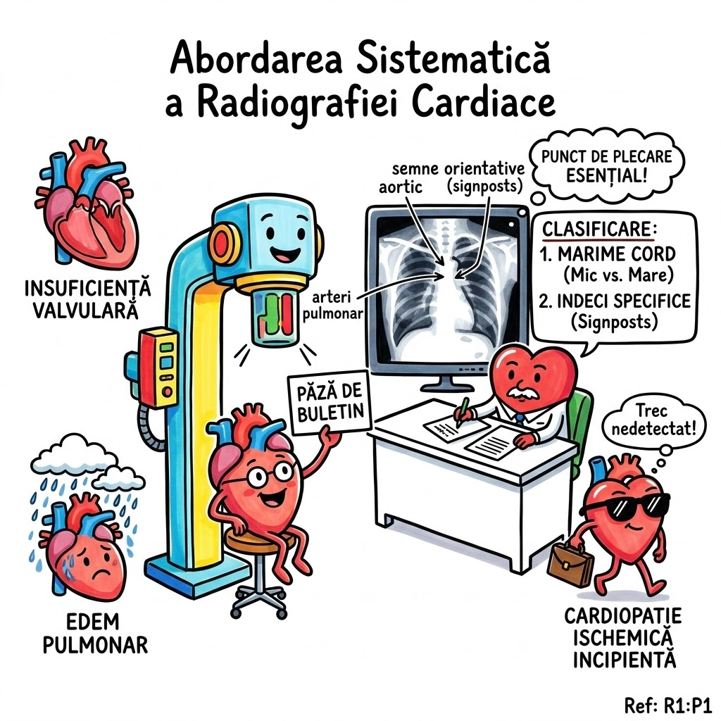 Trei animale de casa care traiesc in AD si pe care fiecare radiolog trebuie sa le recunoasca inainte de a chema controlul antiparazitar. Pisica (Crista terminalis): sta pe peretele posterior al AD, intre usa din fata (VCS) si usa din spate (VCI). E o banda fibro-musculara — un reziduu al septum spurium. A stat acolo de la nastere. Nu se misca. Nu creste. Nu face rau. E pisica de pe canapea. Perusul de aur (Valva eustachiana): sta la junctiunea VCI cu AD. E un remnant al valvei venei cave inferioare din viata fetala. Uneori e mai mare decat te-ai astepta — si arata ca o masa flotanta. Dar e doar perisorul care flutua in curent. Hamsterul pe roata (Reteaua Chiari): o retea fina de fibre care se intinde de la crista terminalis la valvele VCI si sinusului coronar. Uneori apare ca un nodul rezidual sau o masa filamentara in AD. E hamsterul care alearga pe roata — mult zgomot vizual, zero semnificatie patologica.