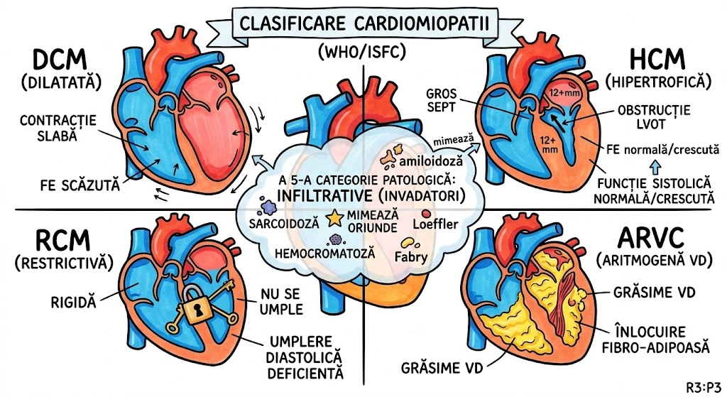 🥊 Ringul Comparatiilor: Clasificarea intracavitar/intramural/intrapericardic/paracardiac e similara cu renovarea unui apartament: interiorul (camera) e altceva decat peretele (structura), care e altceva decat acoperisul (pericard) si gradina (extracardiac). Cand instalatorul vine, prima intrebare e: "Problema e in camera, in perete, pe acoperis sau in curte?" Raspunsul determina ce echipa cheama. La fel cu masele cardiace: localizarea determina diagnosticul diferential.