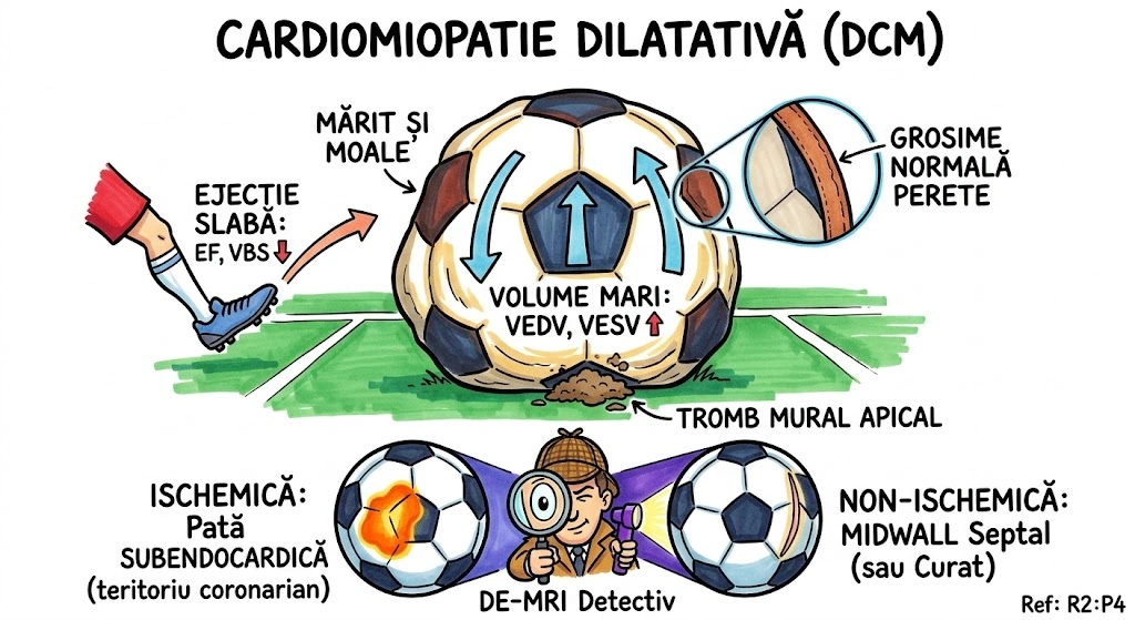 🥊 Ringul Comparatiilor: Mixomul cu Fe si semnal T2 scazut care simuleaza trombul e ca un fotbalist in civil — poarta blugi si tricou, arata ca un spectator obisnuit. Dar pune-l pe teren (Cine RMN) si il recunosti instantaneu dupa miscare. Trombul nu se misca prin valva. Mixomul da. Contrastul dintre aparenta statica (T2 scazut ca trombul) si comportamentul dinamic (prolaps diastolic) este cheia diagnosticului.
