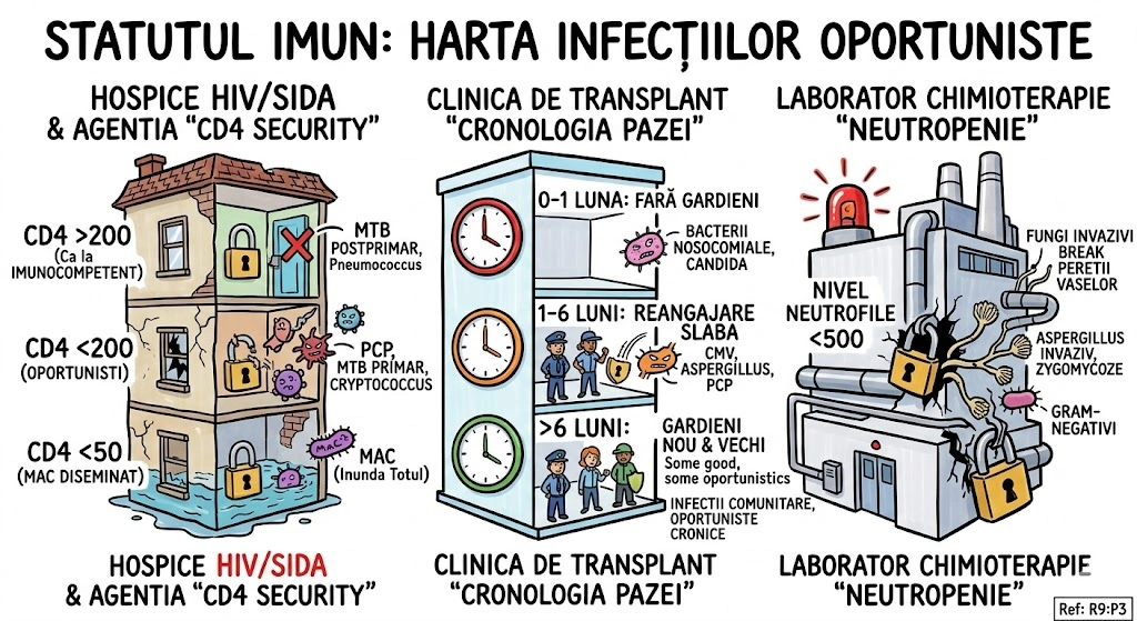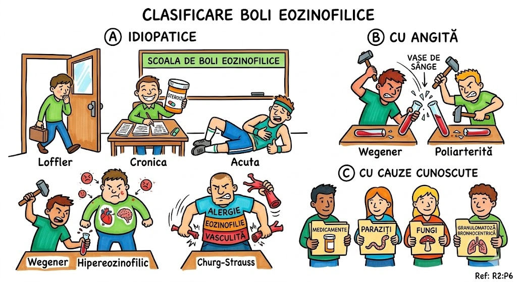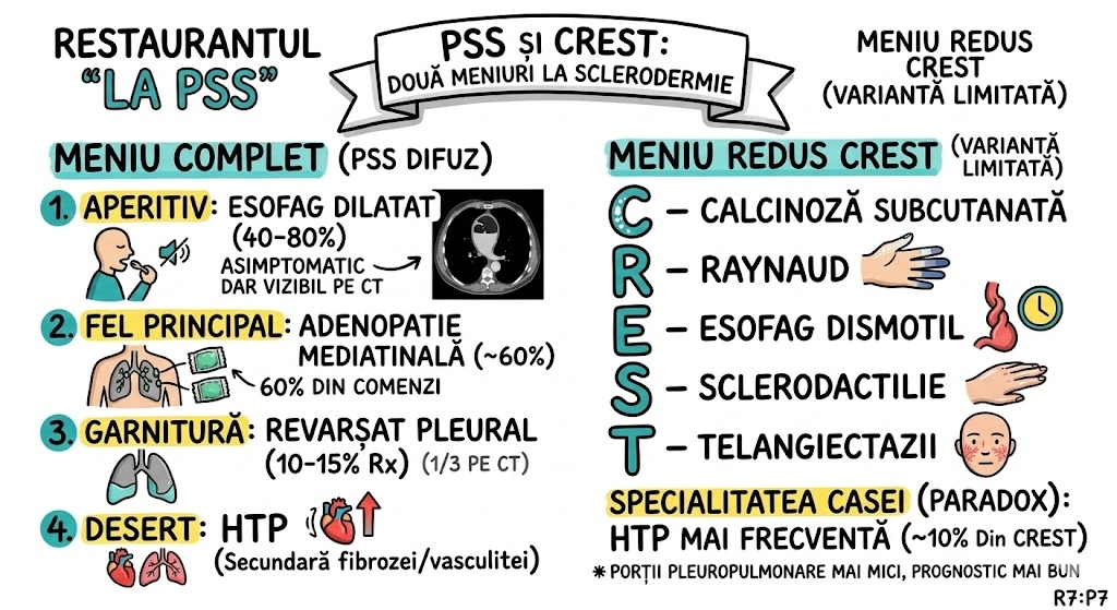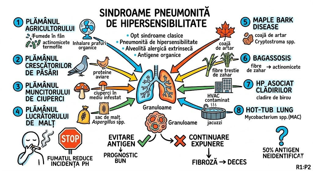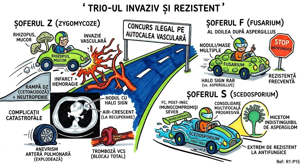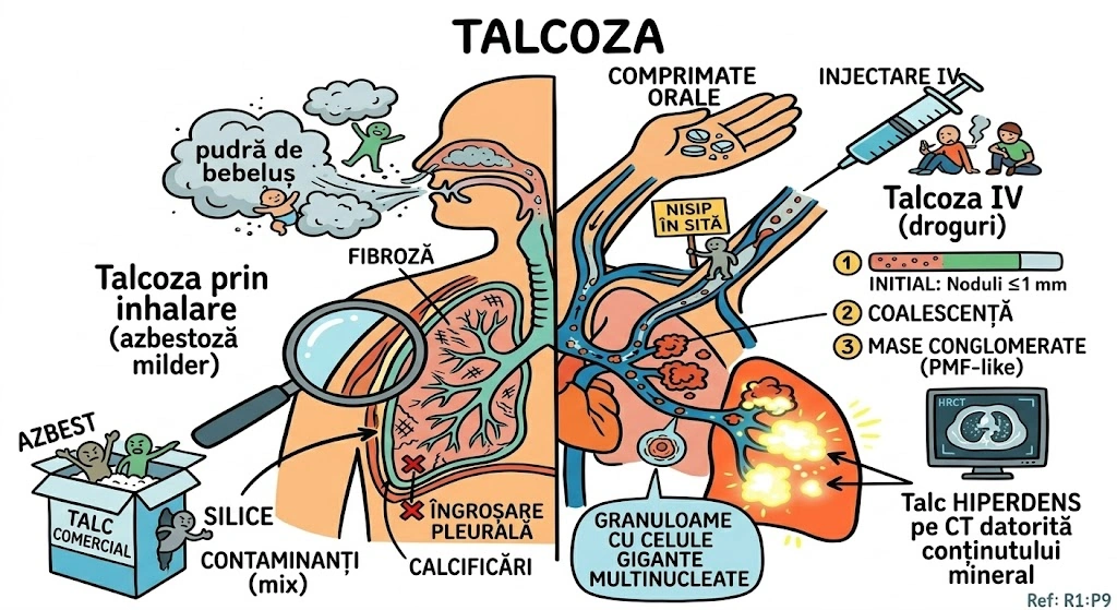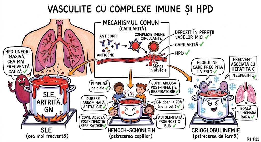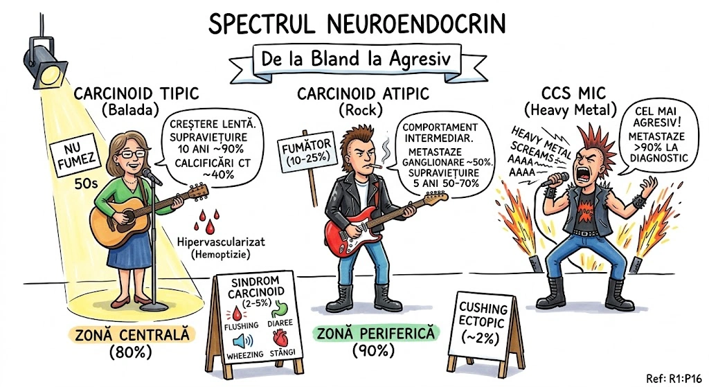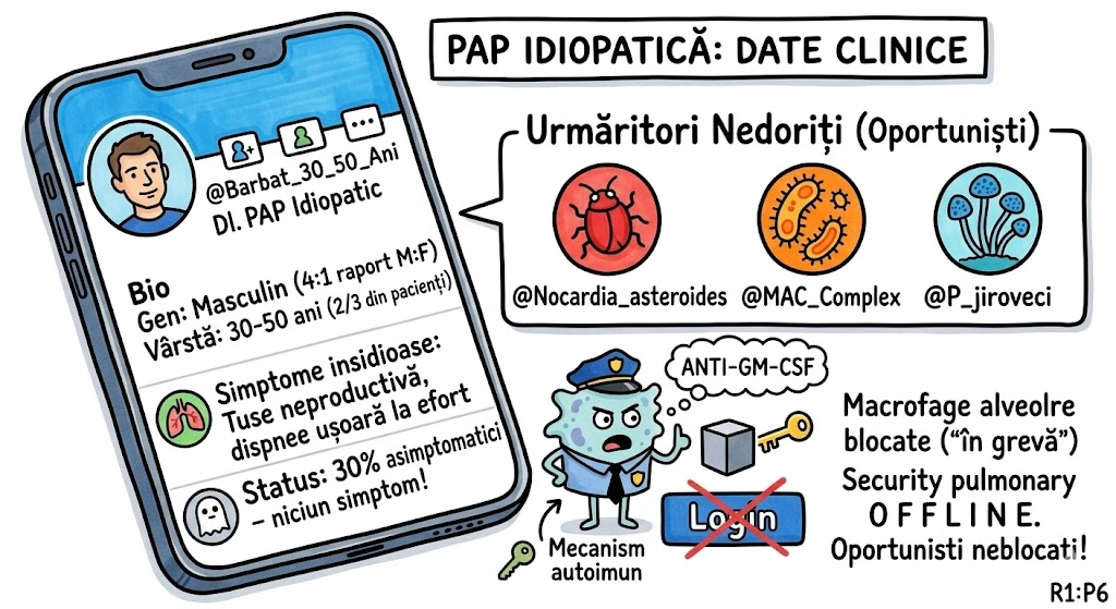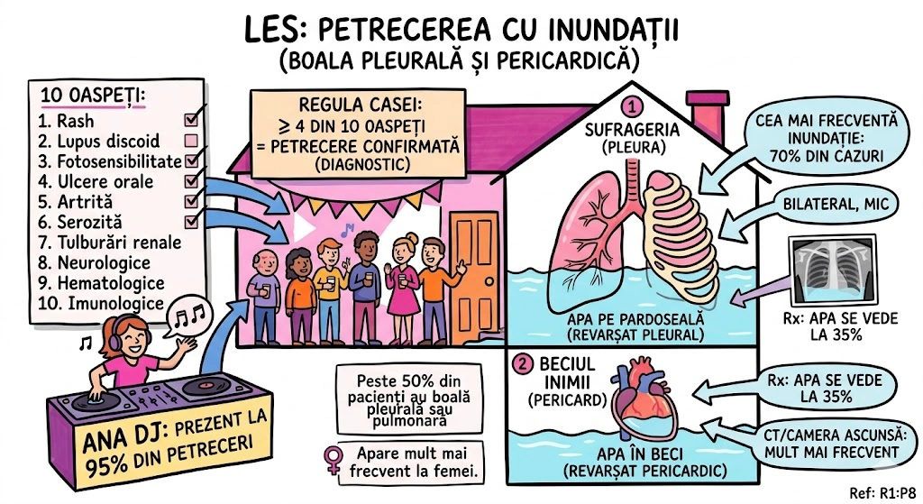 🥊 Ringul Comparatiilor: Consolidarea rapid aparuta (ore) vs. persistent cronica (4–6 saptamani) e diferenta intre un accident de masina si o rugina progresiva. Accidentul (edem, aspiratie, hemoragie) e brusc, dramatic, vizibil imediat. Rugina (eozinofilica, BOOP, carcinom) e lenta, insidioasa, descoperita intamplator. Ambele distrug masina, dar cronometrul iti spune cine e vinovatul.