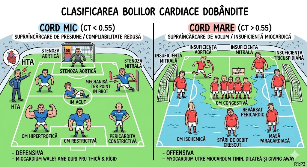 🥊 Ringul Comparatiilor: Clasificarea intracavitar/intramural/intrapericardic/paracardiac e similara cu renovarea unui apartament: interiorul (camera) e altceva decat peretele (structura), care e altceva decat acoperisul (pericard) si gradina (extracardiac). Cand instalatorul vine, prima intrebare e: "Problema e in camera, in perete, pe acoperis sau in curte?" Raspunsul determina ce echipa cheama. La fel cu masele cardiace: localizarea determina diagnosticul diferential.