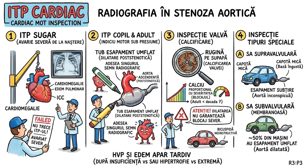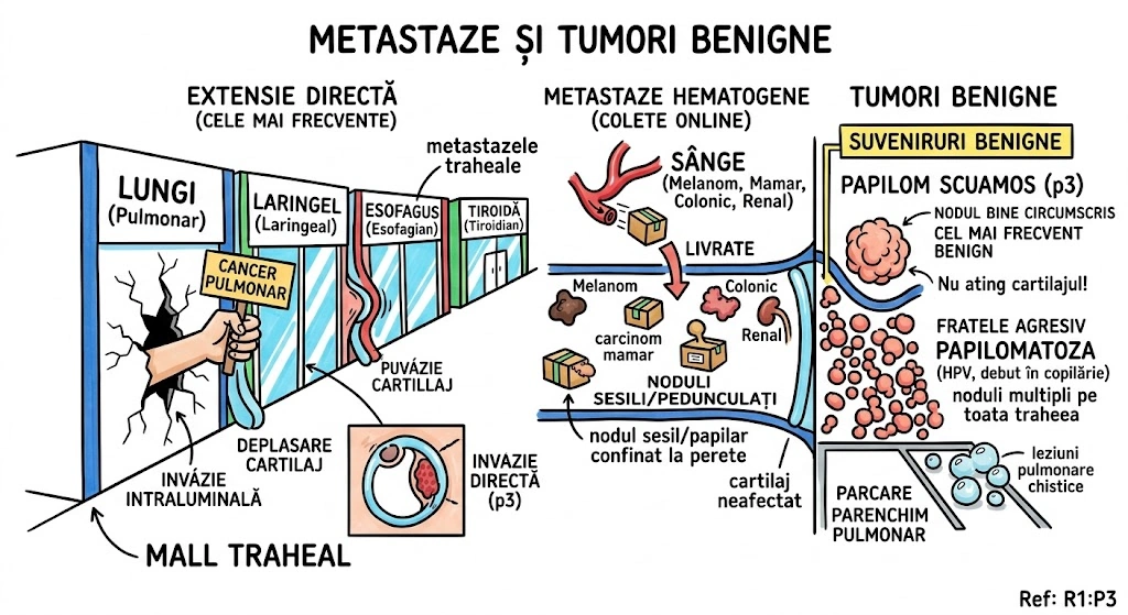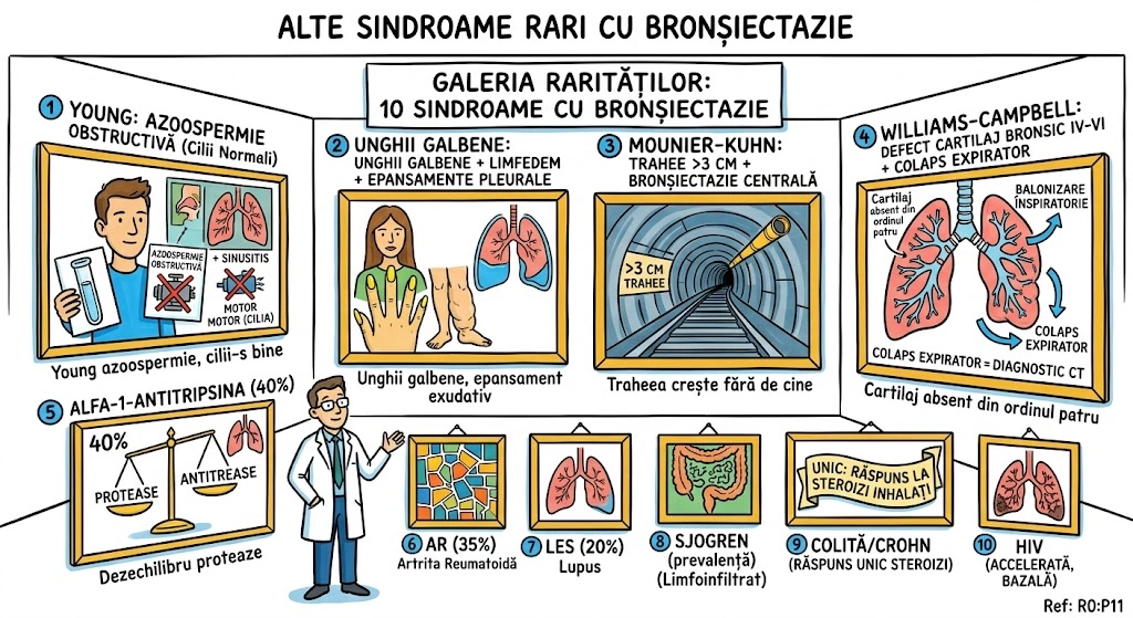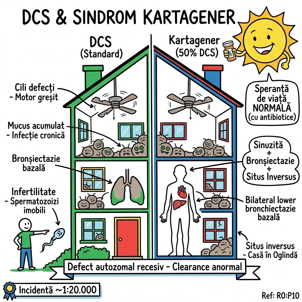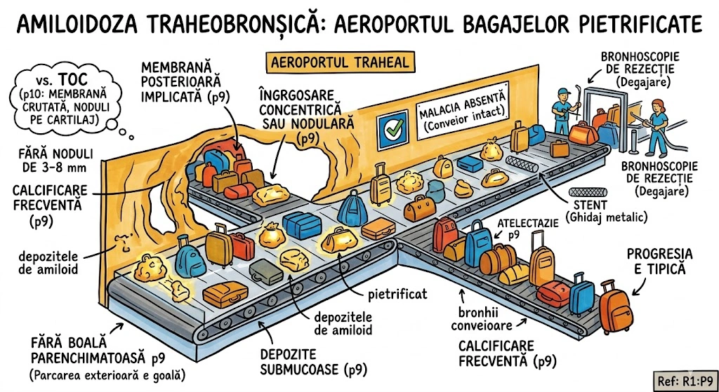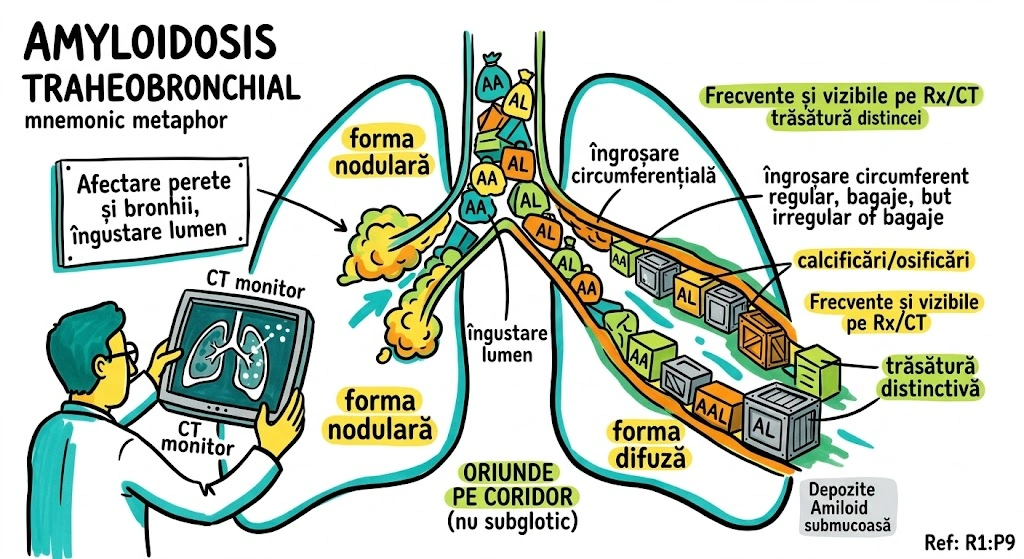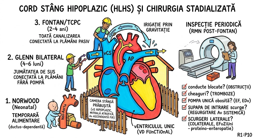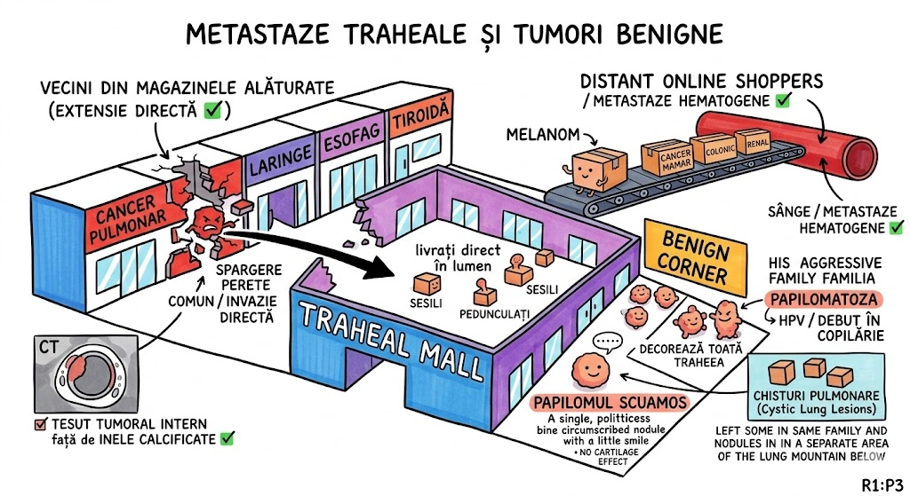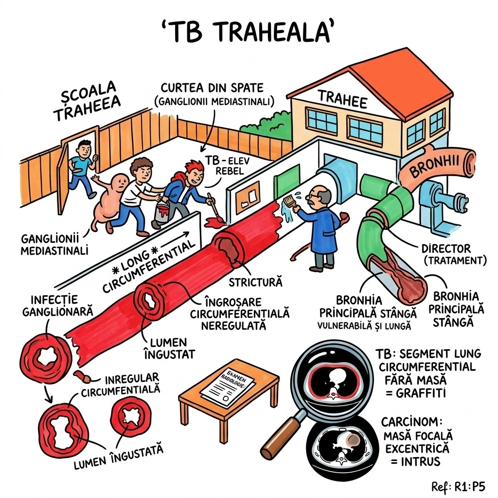 🥊 Ringul Comparatiilor: Bronsul traheal e ca un gard viu plantat in locul gresit la marginea curtii — nu deranjeaza pe nimeni pana creste prea mult si se infecteaza, moment in care trebuie tuns sau extirpat. Bronsul cardiac e ca o extensie de casa facuta fara autorizatie. Izomerismul e ca doua camere de hotel identice in loc de oglindite — functioneaza aparent, dar toata instalatia sanitara (cardiaca) este aranjata gresit.