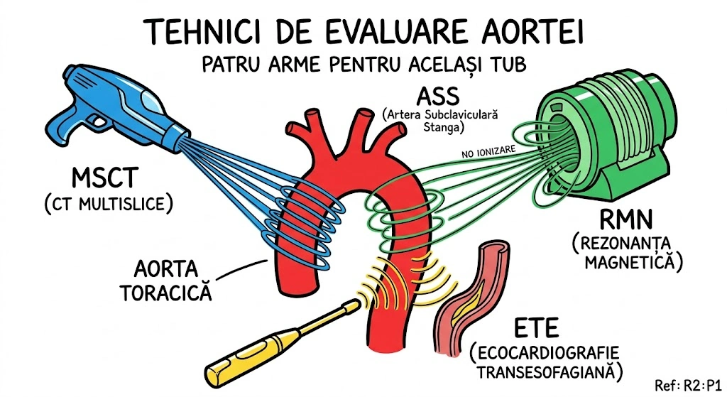 CT vs. ecocardiografie la calcificarile valvulare e ca diferenta dintre radiografia si ecografia in fata unui zid de beton: ecografia nu trece prin calcificari (artefacte acustice), dar CT le vede perfect. Cand valva e puternic calcificata, ecografia orbeste — CT preia.