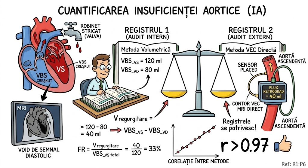 VEC-MRI fata de ecocardiografia Doppler e ca diferenta dintre a masura debitul de apa cu un contor digital calibrat vs. a-l estima dupa zgomotul din teava: Doppler-ul depinde de fereastra acustica si de unghiul de insonatie (daca tinii stetoscopul stramb, auzi gresit), pe cand VEC-MRI masoara direct, precis si reproductibil, indiferent de habitusul pacientului.