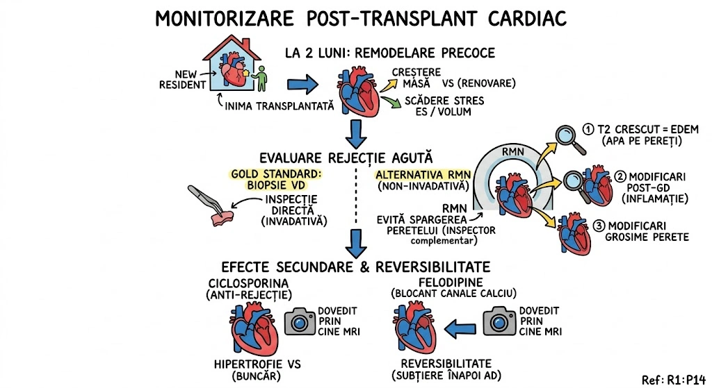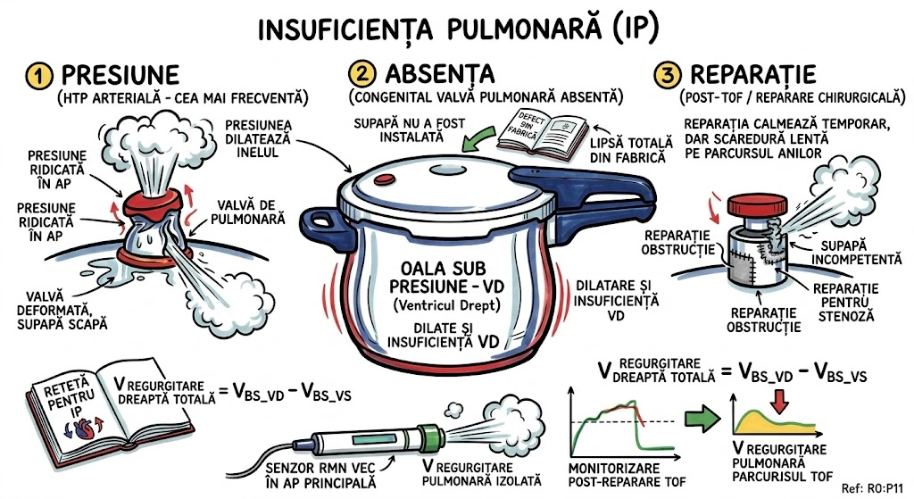 Monitorizarea TOF post-operator e ca revizia tehnica periodica a masinii dupa o reparatie majora: nu intrebi "merge masina?" — intrebi "cat pierde motorul (RP) si cat s-a dilatat rezervorul (EDV VD)?" Pragurile sunt stricte: peste 150-160 mL/m² sau EF sub 45% = masina nu mai trece ITP-ul, se inlocuieste piesa (valva pulmonara). Fara revizie periodica prin RMN, degradarea trece neobservata pana la defectiune critica.